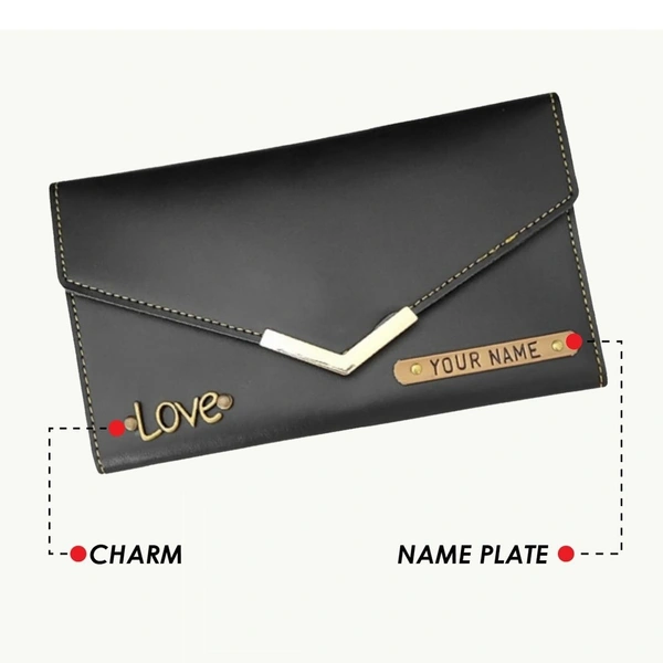 Personalized Ladies Clutch With Charm black Color