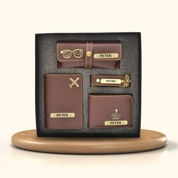 Personalized Nexon Leather All in One Men's Combo (4 pcs) - Brown