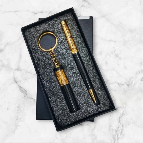 High quality finish in Black and Gold with a rich, polished tone, become the bearer of this magnificent combo of a Premium Pen and a Keychain.