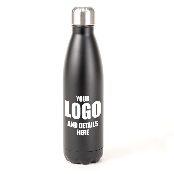 Double walled vacuum insulated Stainless Steel water bottle with air tight screw cap to prevents leaks .Keeps cold drinks cool for up to 24 hours and hot drinks stay hot for up to 12 hours. Holds 500ml and comes in 5 great colours. They will look great with your logo/ details permanently engraved on them.
